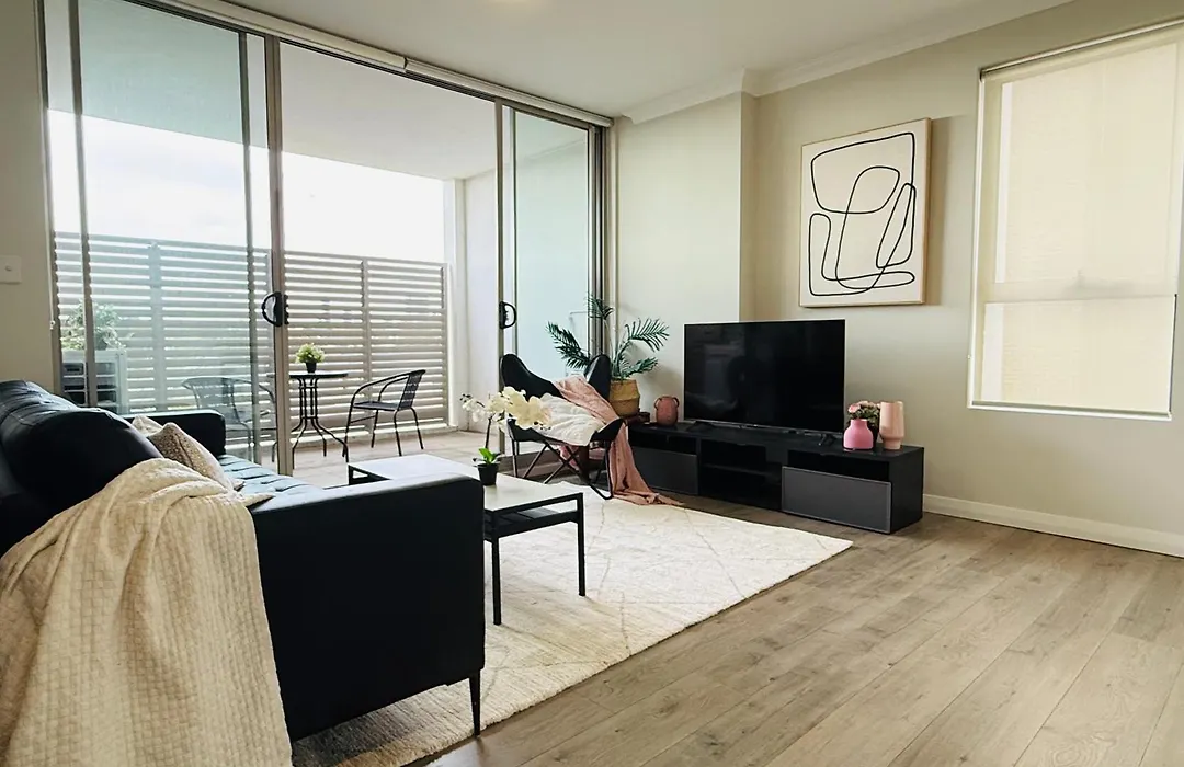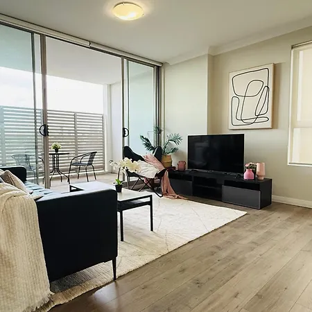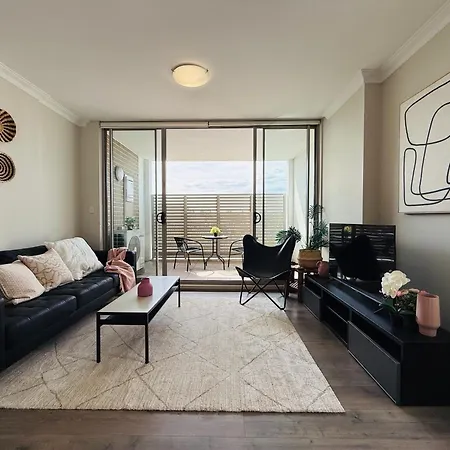 A Merrylands 2Bedrooms Apt With Free Car Parking magába foglal erkélyt, nappalit és konyhát klímaberendezéssel a maximális kényelem érdekében.